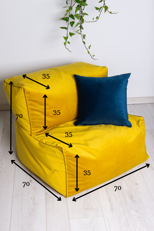 Dimensions: 70cm x 70cm, with a seat height of 35cm and a seat depth of 35cm.